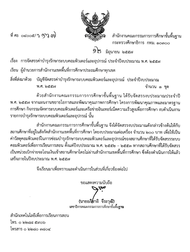 การจัดสรรค่าบำรุงรักษาระบบคอมพิวเตอร์และอุปกรณ์ ประจำปีงบประมาณ พ.ศ. 2557