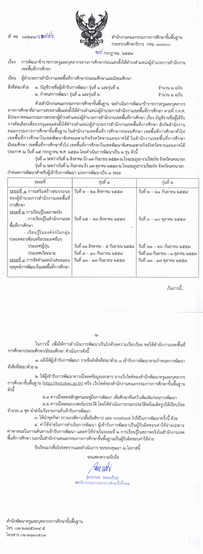 การพัฒนาข้าราชการครูและบุคลากรทางการศึกษาก่อนแต่งตั้งให้ดำรงตำแหน่ง ผอ.สพท.