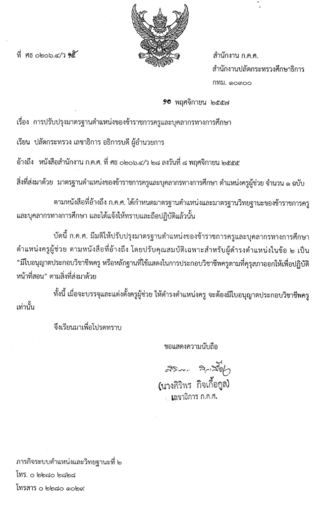 ว15/2557 การปรับปรุงมาตรฐานตำแหน่งของข้าราชการครูและบุคลากรทางการศึกษา
