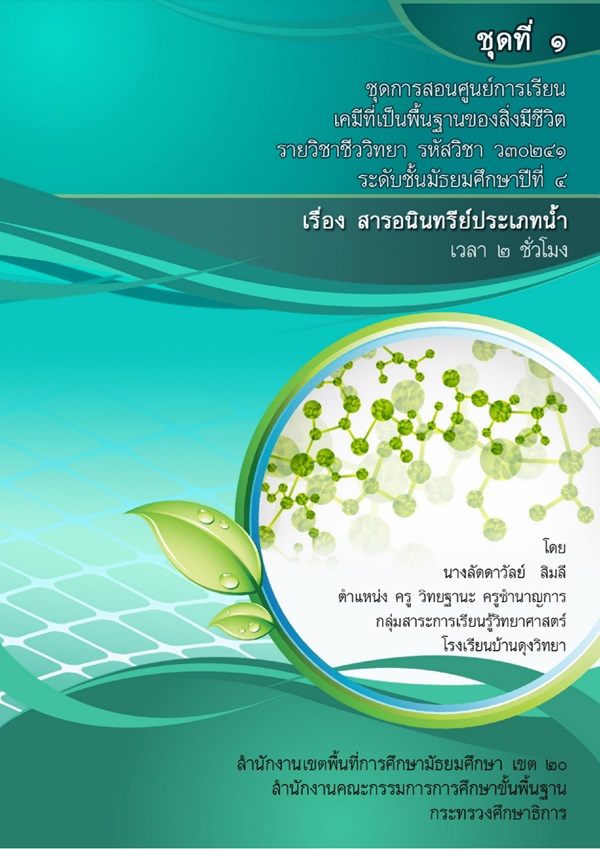 ชุดการสอนแบบศูนย์การเรียน ชีววิทยา ม.4 เรื่อง สารอนินทรีย์ประเภทน้ำ