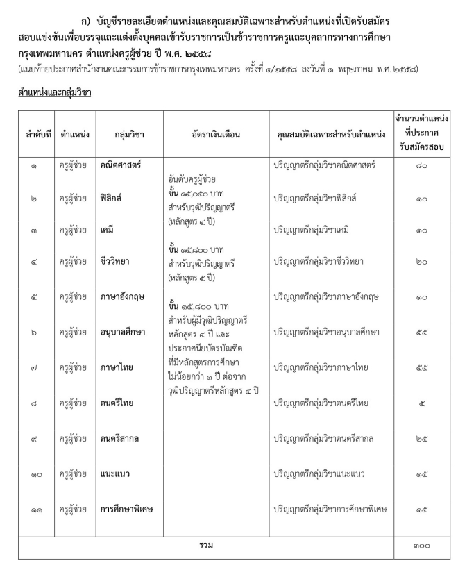 หมายเหตุ รายละเอียดเกี่ยวกับคุณสมบัติเฉพาะสาหรับตำแหน่ง กลุ่มวิชา จำนวนตำแหน่งที่เปิดรับสมัครสอบ หลักสูตรและตารางกำหนดการสอบ การสอบแข่งขันอยู่แนบท้ายประกาศนี้