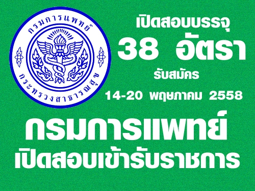 กรมการแพทย์ เปิดสอบเข้ารับราชการ 38 อัตรา เปิดรับสมัคร 14-20 พฤษภาคม 2558