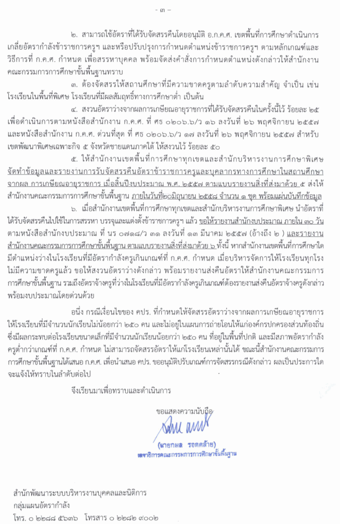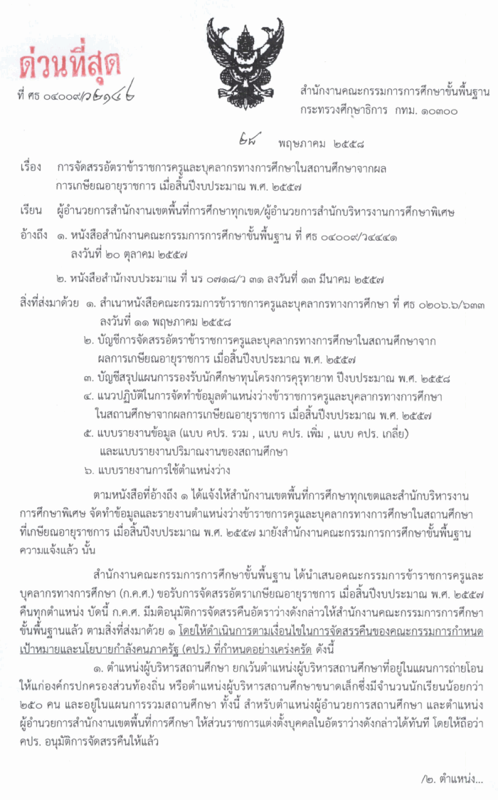 ด่วนที่สุด ที่ ศธ 04009/ว2142 การจัดสรรอัตราข้าราชการครูและบุคลากรทางการศึกษาในสถานศึกษาจากผลการเกษียณอายุราชการ เมื่อสิ้นปีงบประมาณ พ.ศ.2557