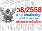 พระราชบัญญัติระเบียบเงินเดือน เงินวิทยฐานะ และเงินประจำตำแหน่งของข้าราชการครูและบุคลากรทางการศึกษา (ฉบับที่ 3) พ.ศ.2558 ประกาศในราชกิจจานุเบกษา เล่ม 132 ตอนที่ 43 ณ วันที่ 21 พฤษภาคม 2558 มีผลบังคับใช้ตั้งแต่วันที่ 1 ธันวาคม 2557 โดยการปรับโครงสร้างบัญชีเงินเดือนขั้นต่ำขั้นสูงตามพระราชบัญญัติระเบียบเงินเดือน เงินวิทยฐานะ และเงินประจำตำแหน่งของข้าราชการครูและบุคลากรทางการศึกษา (ฉบับที่ 3) พ.ศ.2558 มีรายละเอียด ดังนี้ (ครูบ้านนอกดอทคอม)