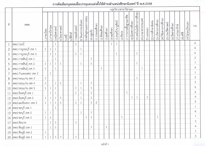 สรุปรายชื่อเขตพื้นที่ ที่เปิดสอบศึกษานิเทศก์ จำแนกตามรายวิชาเอก
