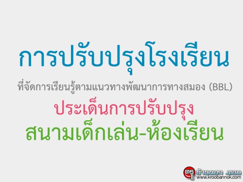 การปรับปรุงโรงเรียนที่จัดการเรียนรู้ตามแนวทางพัฒนาการทางสมอง (BBL) ตามโครงการพลิกโฉมโรงเรียน ป.1 อ่านออกเขียนได้ใน 1 ปี