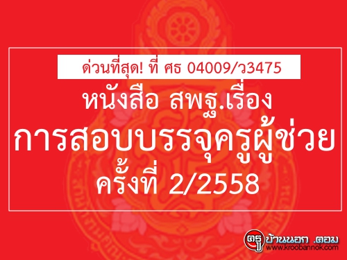 เมื่อวันที่ 7 สิงหาคม 2558 สำนักงานคณะกรรมการการศึกษาขั้นพื้นฐาน ได้มีหนังสือ ด่วนที่สุด ที่ ศธ 04009/ว3475 การสอบแข่งขันเพื่อบรรจุและแต่งตั้งบุคคลเข้ารับราชการเป็นข้าราชการครูและบุคลากรทางการศึกษา ตำแหน่งครูผู้ช่วย ครั้งที่ 2 ปี พ.ศ.2558