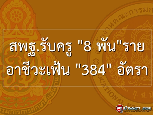 ข่าวดีอีกข่าว คือ สำนักงานคณะกรรมการการอาชีวศึกษา (สอศ.) กำลังเปิดรับสมัครคัดเลือกบุคคลเพื่อบรรจุและแต่งตั้งเข้ารับราชการเป็นข้าราชการครูและบุคลากรทางการศึกษา ตำแหน่งครูผู้ช่วย กรณีที่มีความจำเป็นหรือมีเหตุพิเศษ จำนวน 384 อัตรา ใน 35 กลุ่มวิชา หมดเขตรับสมัครวันที่ 17 สิงหาคมนี้