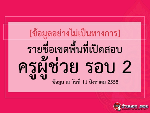 เมื่อวันที่ 11 สิงหาคม 2558 คุณ Pek Somsak Tangkolchan ได้โพสต์ข้อมูลบนเฟซบุ๊ค เกี่ยวกับรายชื่อเขตพื้นที่การศึกษา ที่เปิดสอบ "ครูผู้ช่วย" รอบ 2 ปี 2558 และส่งข้อมูลมายังครูบ้านนอกดอทคอม โดยมีข้อความพร้อมรูปภาพ ดังนี้ครับ