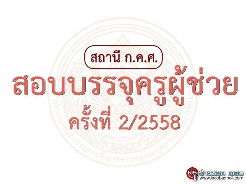 ตามที่สำนักงานคณะกรรมการการศึกษาขั้นพื้นฐาน กำหนดให้มีการสอบแข่งขันเพื่อบรรจุและแต่งตั้งบุคคลเข้ารับราชการเป็นข้าราชการครูและบุคลากรทางการศึกษา ตำแหน่งครูผู้ช่วย ครั้งที่ 2 ประจำปี 2558 แทนอัตราว่างที่มีอยู่ 8,000 ตำแหน่ง โดยกำหนดให้มีการเปิดรับสมัครตั้งแต่วันที่ 14-20 กันยายน 2558 ประกาศรายชื่อผู้มีสิทธิสอบ วันที่ 25 กันยายน 2558 สอบภาค ก ภาค ข และภาค ค วันที่ 10-12 ตุลาคม 2558 และประกาศผลสอบในวันที่ 20 ตุลาคม 2558 นั้น