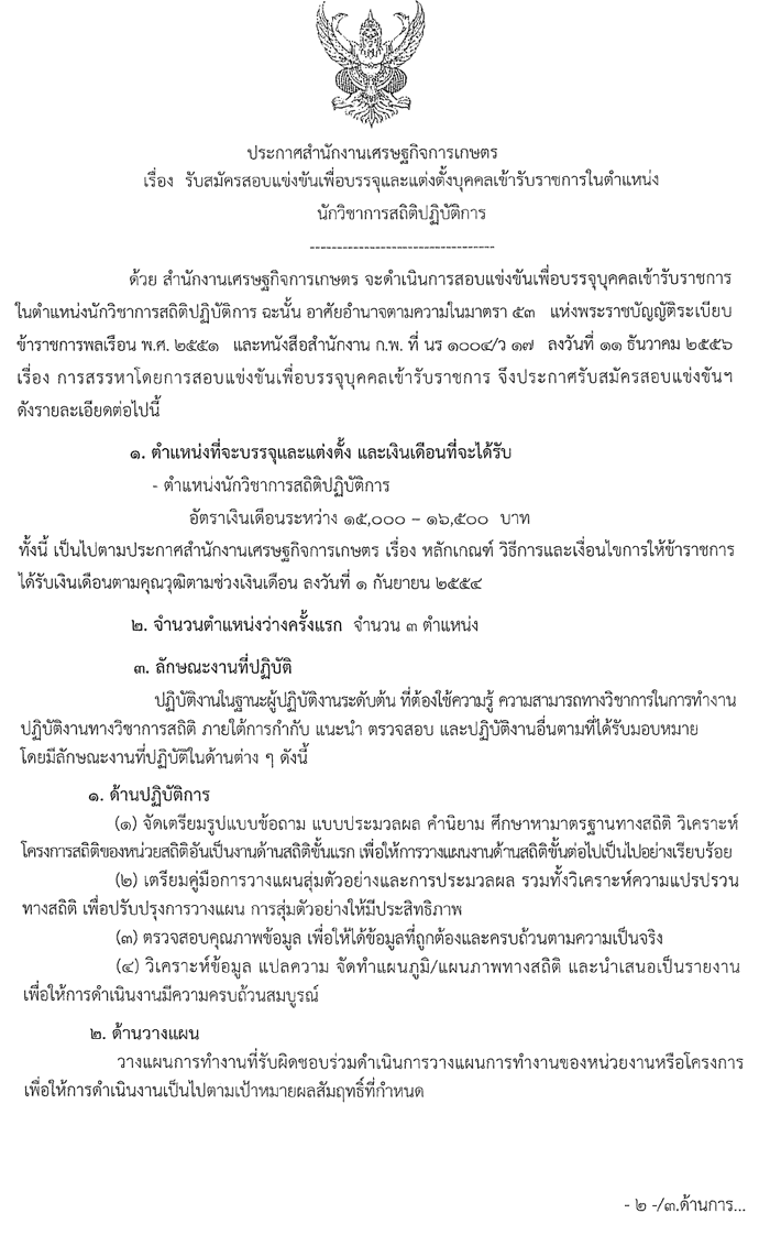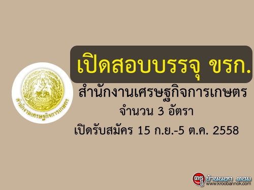 สำนักงานเศรษฐกิจการเกษตร เปิดสอบแข่งขันรับสมัครบุคคลเป็นข้าราชการ จำนวน 3 อัตรา เปิดรับสมัคร 15 กันยายน ถึง 5 ตุลาคม 2558