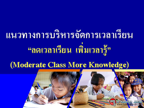 รมว.ศึกษาธิการ กล่าวว่า จากการที่กระทรวงศึกษาธิการได้เริ่มดำเนินการวางแนวทางการบริหารจัดการเวลาเรียน ตามนโยบาย "ลดเวลาเรียน เพิ่มเวลารู้ (Moderate Class More Knowledge)" มาตั้งแต่สมัยพลเรือเอก ณรงค์ พิพัฒนาศัย ดำรงตำแหน่งรัฐมนตรีว่าการกระทรวงศึกษาธิการ จนกระทั่งมีการหารือและดำเนินการตามแผนมาเป็นระยะ พบว่ามี 4 เรื่องหลักที่จะต้องดำเนินการเพื่อให้โครงการมีความสมบูรณ์ ดังนี้