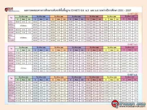ผลการทดสอบทางการศึกษาระดับชาติขั้นพื้นฐาน (O-NET) ป.6 ม.3 และ ม.6 ระหว่างปีการศึกษา 2551-2557