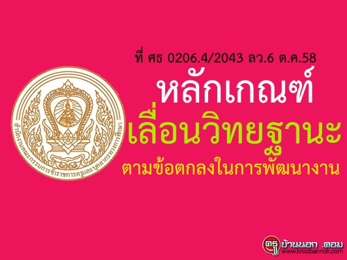 หลักเกณฑ์และวิธีการให้ข้าราชการครูและบุคลากรทางการศึกษามีวิทยฐานะเลื่อนเป็นวิทยฐานะชำนาญการพิเศษและวิทยฐานะเชี่ยวชาญ ตามข้อตกลงในการพัฒนางาน