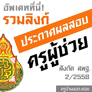 อัพเดท ประกาศผลสอบครูผู้ช่วย 2/2558 ได้ที่นี่ รวมลิงก์ การประกาศผลการสอบแข่งขันเพื่อบรรจุและแต่งตั้งบุคคลเข้ารับราชการเป็นข้าราชการครูและบุคลากรทางการศึกษา ตำแหน่งครูผู้ช่วย ครั้งที่ 2 ปี พ.ศ.2558 สังกัดสำนักงานคณะกรรมการการศึกษาขั้นพื้นฐาน (สพฐ.)
