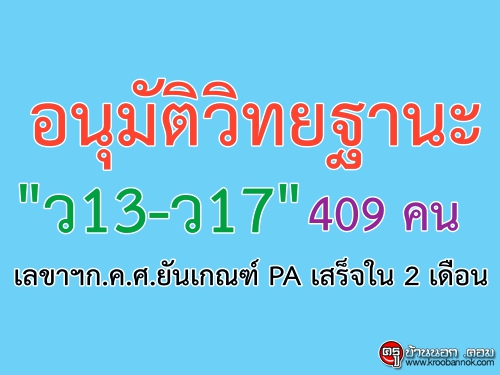 "ข้อมูลล่าสุด ณ วันที่ 30 กันยายน มีข้าราชการครูฯ ยื่นคำขอเพื่อให้มีหรือเลื่อนวิทยฐานะในปีงบประมาณ 2558 ตามหลักเกณฑ์ ว17 จำนวน 229 ราย และ ว13 จำนวน 409 ราย รวมทั้งสิ้น 638 ราย และ ก.ค.ศ.อนุมัติให้มีหรือเลื่อนวิทยฐานตามหลักเกณฑ์ ว17 และ ว13 รวม 409 ราย แบ่งเป็น ว17 จำนวน 20 ราย ได้แก่ ครูเชี่ยวชาญ 14 ราย ศึกษานิเทศก์เชี่ยวชาญ 2 ราย ผู้อำนวยการเชี่ยวชาญ 3 ราย และรองผู้อำนวยการสำนักงานเขตพื้นที่การศึกษา (สพท.) เชี่ยวชาญ 1 คน และยื่นขอตามหลักเกณฑ์ฯ ว13 จำนวน 389 ราย ได้แก่ ครูเชี่ยวชาญ 60 ราย ศึกษานิเทศก์เชี่ยวชาญ 1 ราย รองผู้อำนวยการเชี่ยวชาญ 2 ราย ผู้อำนวยการเชี่ยวชาญ 300 ราย รองผู้อำนวยการ สพท.เชี่ยวชาญ 12 ราย และผู้อำนวยการ สพท.เชี่ยวชาญ 14 ราย ทั้งนี้ยังมีผู้ที่อยู่ระหว่าง การรอประเมิน ว13 อีกกว่า 90 ราย โดยจะดำเนินการให้แล้วเสร็จภายในเดือนพฤศจิกายนนี้" นางสุจิตรากล่าว