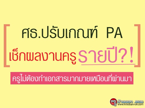โดยการปรับเกณฑ์ PA รูปแบบใหม่นี้ ทำให้ครูไม่ต้องทำเอกสารจำนวนมากเหมือนที่ผ่านมา ซึ่งเป็นการลดภาระให้ครูทำรายงานเพียงปีละ 2-3 หน้า ข้อดีคือไม่รบกวนเวลาที่ครูจะจัดการเรียนการสอน ทำให้ครูไม่ต้องทิ้งห้องเรียน ไม่ต้องทิ้งเด็ก และยังทำให้ครูสามารถวางแผนการสอนและทำงานได้ตลอดทั้งปี ทั้งนี้ในการเสนอขอวิทยฐานะแนวใหม่ ไม่จำเป็นที่ครูจะต้องเสนอขอด้วยตนเอง อาจจะมีบุคคลอื่น เช่น ผู้บังคับบัญชา นักเรียนเห็นผลงานและเสนอชื่อให้ก็ได้ ซึ่งหากคณะกรรมการข้าราชการครูและบุคลากรทางการศึกษา (ก.ค.ศ.) ให้ความเห็นชอบตามแนวทางดังกล่าว ก็อาจจะยกเลิกหลักเกณฑ์การขอมีวิทยฐานะอื่นๆ ทั้งหมดให้เหลือเพียงแนวทางเดียว!!!