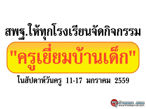 สพฐ.ให้ทุกโรงเรียนจัดกิจกรรม "ครูเยี่ยมบ้านเด็ก" ในสัปดาห์วันครู 11-17 มกราคม 2559สพฐ.ให้ทุกโรงเรียนจัดกิจกรรมครูเยี่ยมบ้านเด็กในสัปดาห์วันครู11-17มกราคม2559