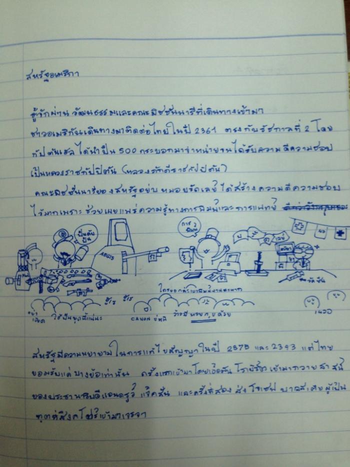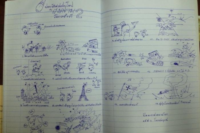 โลกสังคมออนไลน์ได้แชร์สมุดเลคเชอร์ วิชา ประวัติศาสตร์ ของนักเรียนชั้น ม.3 ที่มีความคิดสร้างสรรค์ ในการสรุปเนื้อหาออกมา ในแนวที่ทำให้เข้าใจได้โดยง่าย นับว่าเป็นอีกตัวอย่างหนึ่งของนักเรียน ที่คุณครูควรส่งเสริมครับ เป็นภาพที่โพสต์โดยสมาชิกเฟซบุ๊ก Chonlapoom Banharn ซึ่งเป็นภาพของสมุดจดเลคเชอร์ที่มีการสรุปเนื้อหาวิชาประวัติศาสตร์พร้อมกับวาดภาพประกอบเอาไว้อย่างสร้างสรรค์ ของนักเรียน ม.3 โดยเจ้าของภาพได้โพสต์ข้อความ ประกอบว่า "เมื่อผมสอนวิชาประวัติศาสตร์....(อยากให้สำนักพิมพ์มาจ้างเด็กคนนี้ไปเขียนภาพประกอบตำราประวัติศาสตร์จัง...)"