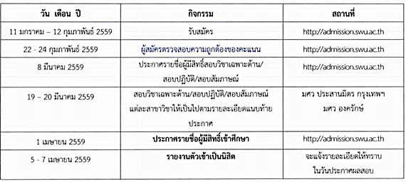 รับตรง มศว 59 เริ่มเปิดรับตรงทั่วประเทศ วันที่ 11 มกราคม - 12 กุมภาพันธ์ 2559 ดูรายละเอียด การสมัครรับตรง มศว 59 ได้ที่นี่