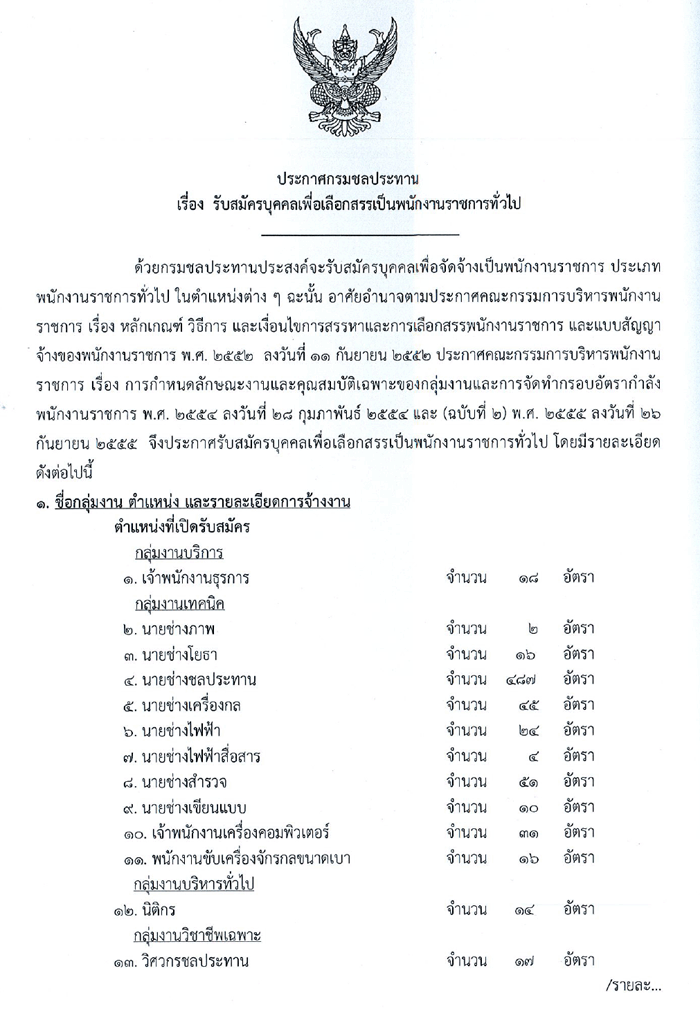 กรมชลประทาน ประกาศ รับสมัครบุคคลเพื่อเลือกสรรเป็นพนักงานราชการทั่วไป
