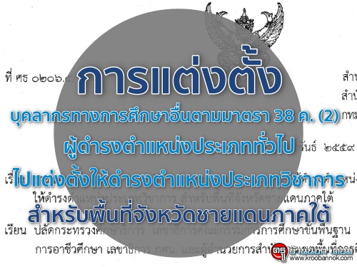 การแต่งตั้งบุคลากรทางการศึกษาอื่นตามมาตรา 38 ค. (2) ผู้ดำรงตำแหน่งประเภททั่วไป ไปแต่งตั้งให้ดำรงตำแหน่งประเภทวิชาการ สำหรับพื้นที่จังหวัดชายแดนภาคใต้