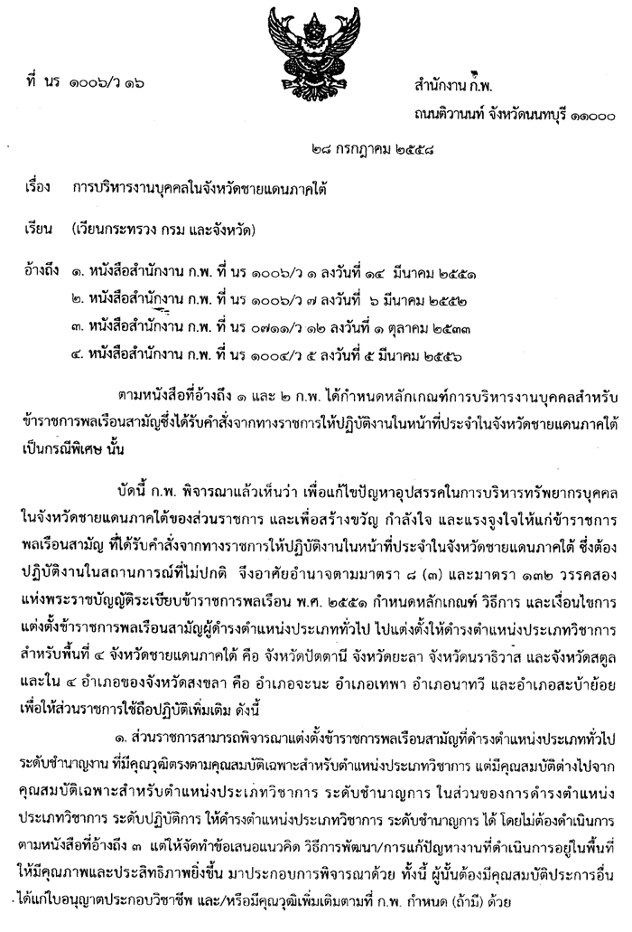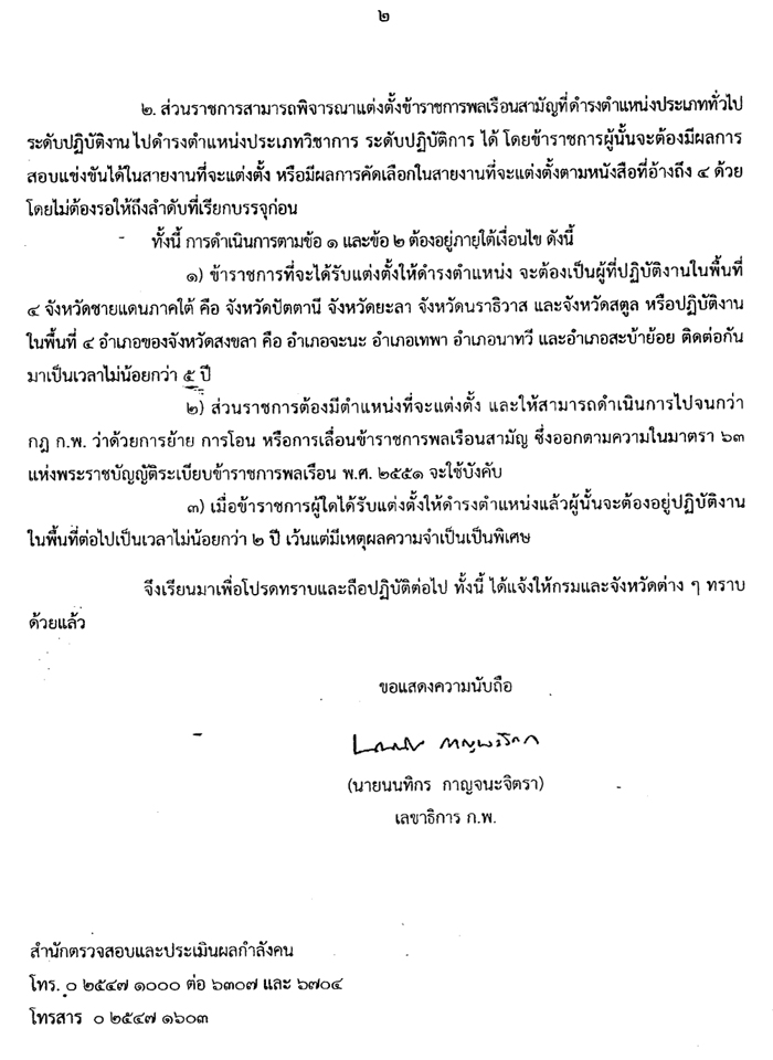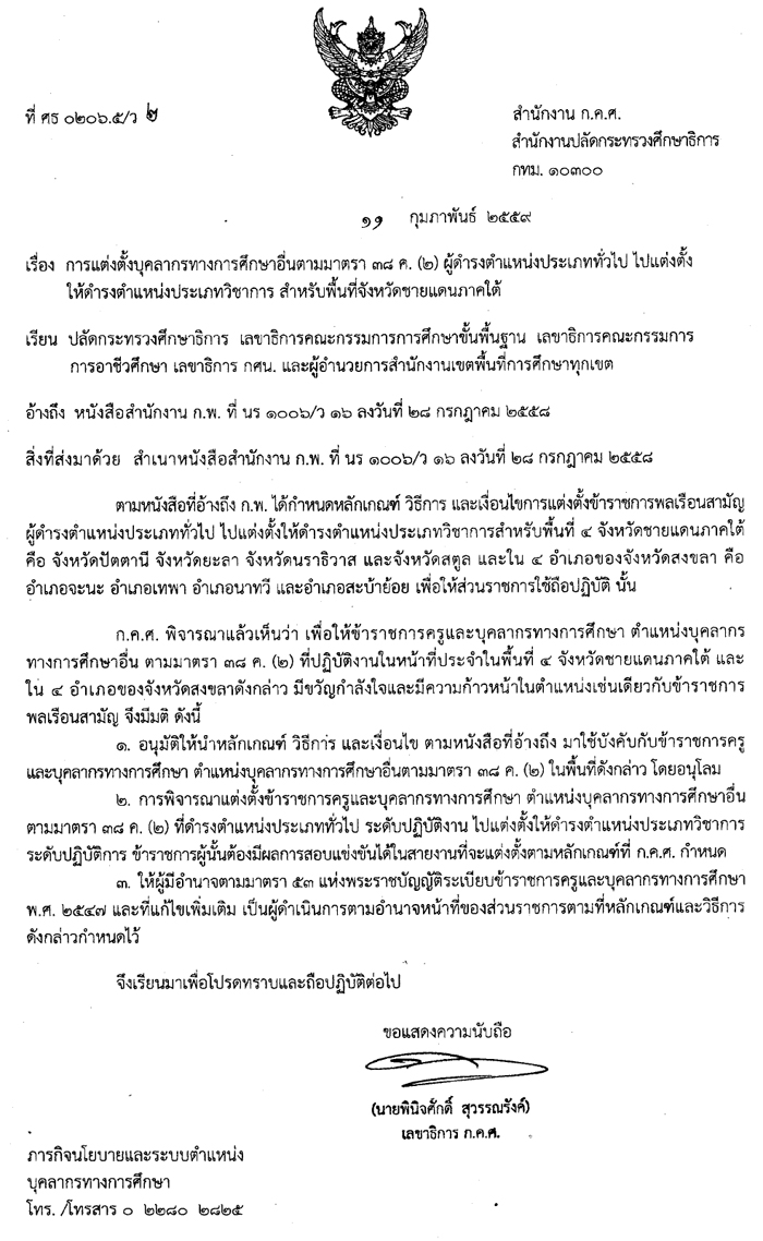 ว2/2559 การแต่งตั้งบุคลากรทางการศึกษาอื่นตามมาตรา 38 ค.(2) ผู้ดำรงตำแหน่งประเภททั่วไป ไปแต่งตั้งให้ดำรงตำแหน่งประเภทวิชาการ สำหรับพื้นที่จังหวัดชายแดนภาคใต้