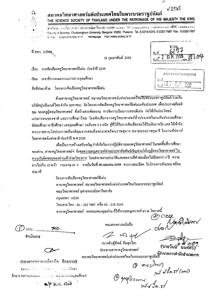 การคัดเลือกครูวิทยาศาสตร์ดีเด่น ประจำปี 2559