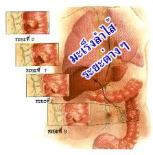 10. มะเร็งลำไส้ใหญ่ มีอาการท้องผูกสลับกับท้องเดินแบบเรื้อรัง หรือถ่ายเป็นเลือด หรือมูกปนเลือดเรื้อรัง ปวดท้อง ปวดหลัง ซีด น้ำหนักลด มีปัจจัยเสี่ยงที่ทำให้เกิดโรคนี้ เช่น ภาวะโคเลสเตอรอลในเลือดสูง, การกินอาหารที่มีกากใยน้อย แต่กินพวกไขมันมาก, ประวัติการเป็นมะเร็งในญาติพี่น้อง เป็นต้น