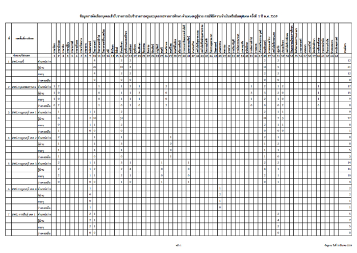ข้อมูลการคัดเลือกบุคคลเข้ารับราชการเป็นข้าราชการครูและบุคลากรทางการศึกษา ตำแหน่งครูผู้ช่วย กรณีที่มีความจำเป็นหรือมีเหตุพิเศษ ครั้งที่ 1 ปี พ.ศ.2559