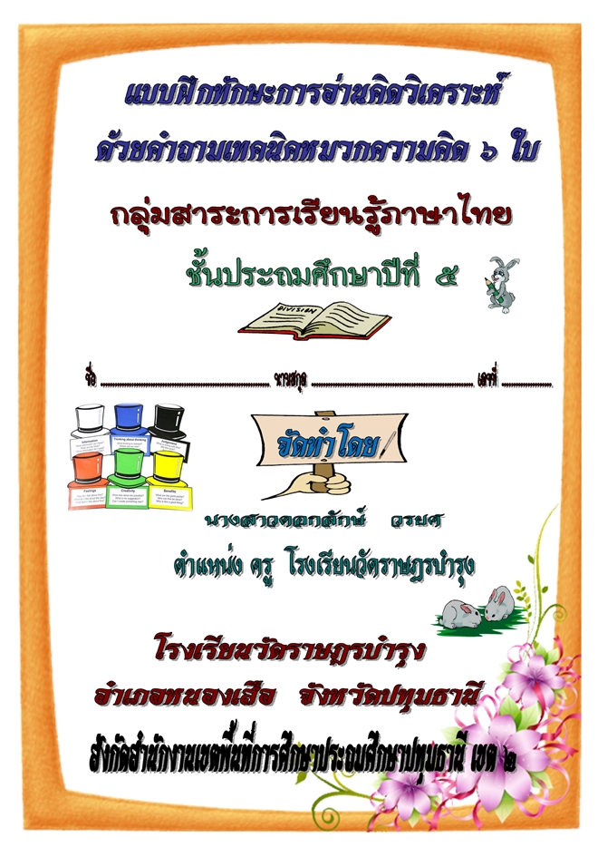 แบบฝึกทักษะการอ่านเชิงวิเคราะห์ วิชาภาษาอังกฤษพื้นฐาน ม.1 ผลงานครูสุพรรณี ทองคำแบบฝึกทักษะการอ่านเชิงวิเคราะห์วิชาภาษาอังกฤษพื้นฐานม.1ผลงานครูสุพรรณีทองคำ