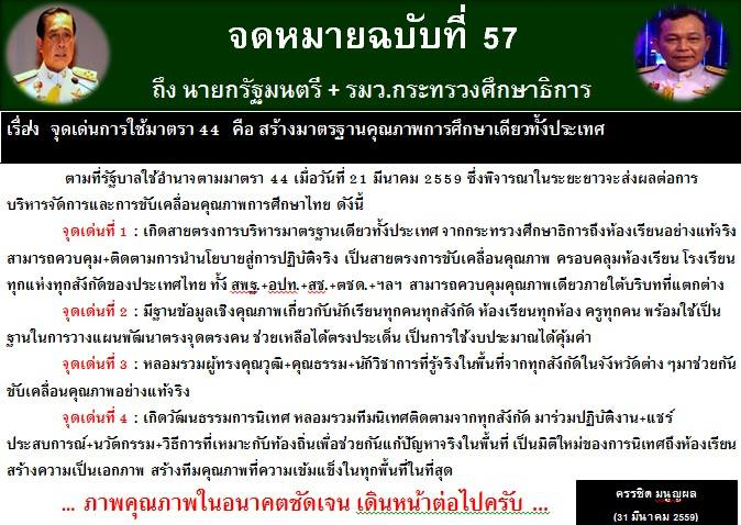 จดหมายถึง นายกรัฐมนตรี+รมว.กระทรวงศึกษาธิการ ฉบับที่ 57