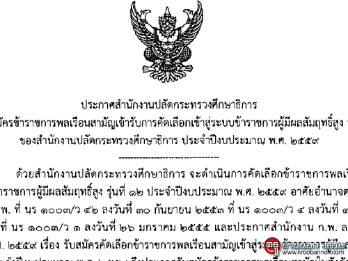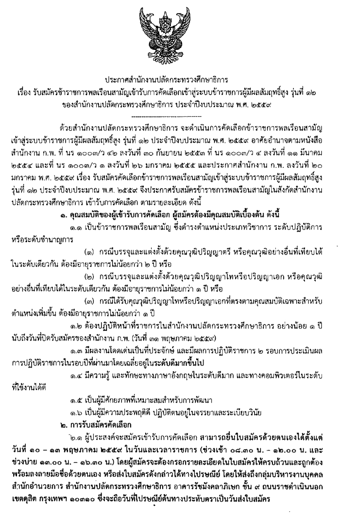ประกาศรับสมัครข้าราชการพลเรือนสามัญเข้าสู่ระบบข้าราชการผู้มีผลสัมฤทธิ์สูง รุ่นที่ 12
