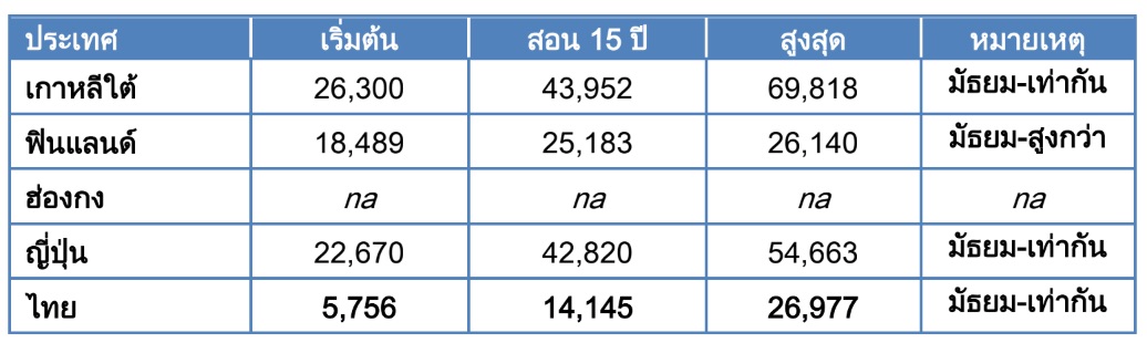 ตาราง 1 เงินเดือนครู (ประถมศึกษา) ต่อปีในระบบราชการ (คำนวณเป็น USD/PPP)