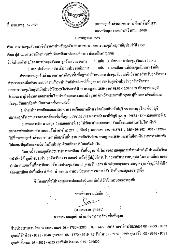 การประชุมสัมมนาเชิงวิชาการสำหรับลูกจ้างส่วนราชการและการประชุมใหญ่สามัญประจำปี 2559