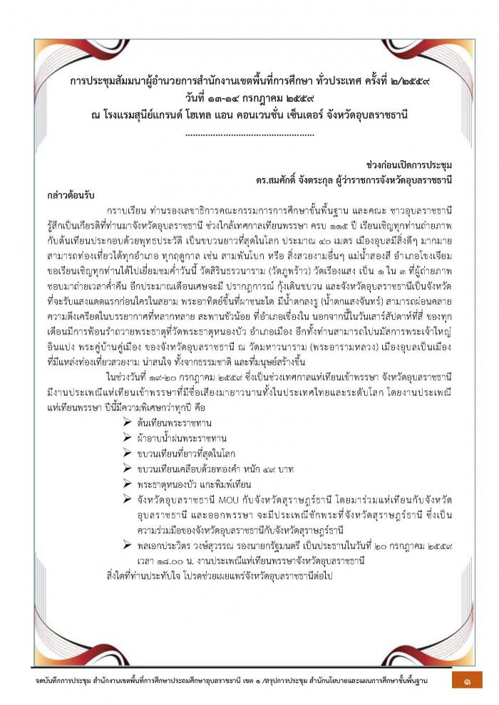 สรุปการประชุมสัมมนาผู้อำนวยการสำนักงานเขตพื้นที่การศึกษาทั่วประเทศ ครั้งที่ 2/2559 ณ โรงแรมสุนีย์แกรนด์ โฮเทล แอน คอนเวนชั่นเซ็นเตอร์
