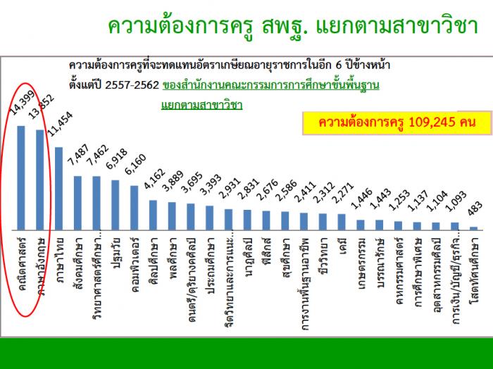 ข้อมูลจาก สไลด์ประกอบบรรยาย "การผลิตครูเพื่อปฏิรูปการเรียนรู้สู่อนาคตการศึกษาไทย" โดย พล.อ.ดาว์พงษ์ รัตนสุวรรณ รัฐมนตรีว่าการกระทรวงศึกษาธิการ ณ มหาวิทยาลัยศรีนครินทรวิโรฒ (มศว) ประสานมิตร เมื่อวันพุธที่ 27 กรกฎาคม 2559
