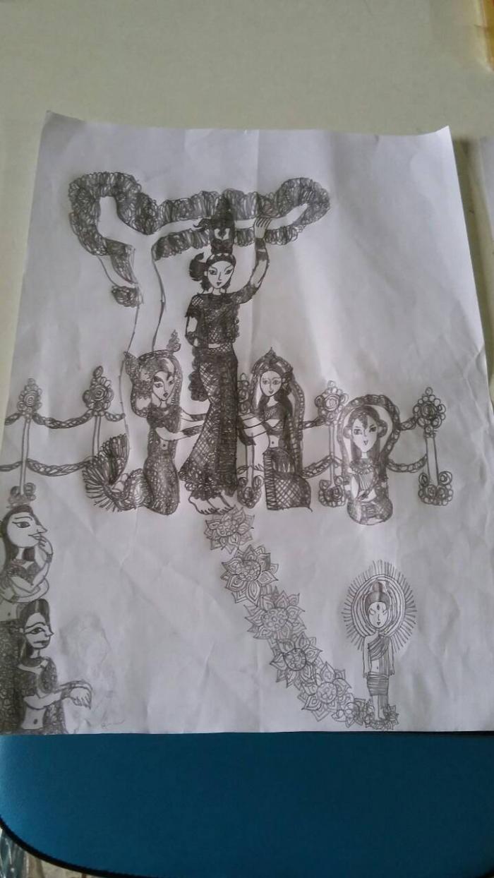 สำหรับเรื่องราวที่คุณครูเล่านั้น คือตอนที่น้องไอซ์วาดกินรีได้อย่างสวยงามแม้ได้เห็นแค่ครั้งเดียว รวมถึงยังสามารถวาดภาพเทพเจ้าทางฮินดู อย่างพระแม่อุมา ที่น้องไอซ์วาดออกมาเป็นปางทุรคา มีอาวุธครบมือ และแม่ลักษมี เทพเจ้าแห่งความร่ำรวยที่ประทานเงินออกจากพระหัตถ์ ส่วนภาพพระพุทธเจ้า น้องไอซ์วาดภาพเหตุการณ์ประสูติได้แตกต่างกันไปในแต่ละครั้ง แต่ยังคงไว้ด้วยรายละเอียด เช่น ดอกบัวเจ็ดดอกที่ไล่เรียงระยะอย่างสวยงาม