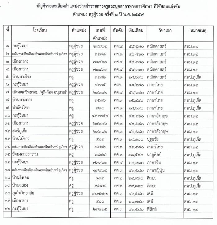 กศจ.ภูเก็ต รับสมัครสอบแข่งขันเพื่อบรรจุบุคคลเข้ารับราชการข้าราชการครูและบุคลากรทางการศึกษา ตำแหน่งครูผู้ช่วย ครั้งท่ี 1 ปี พ.ศ.2559