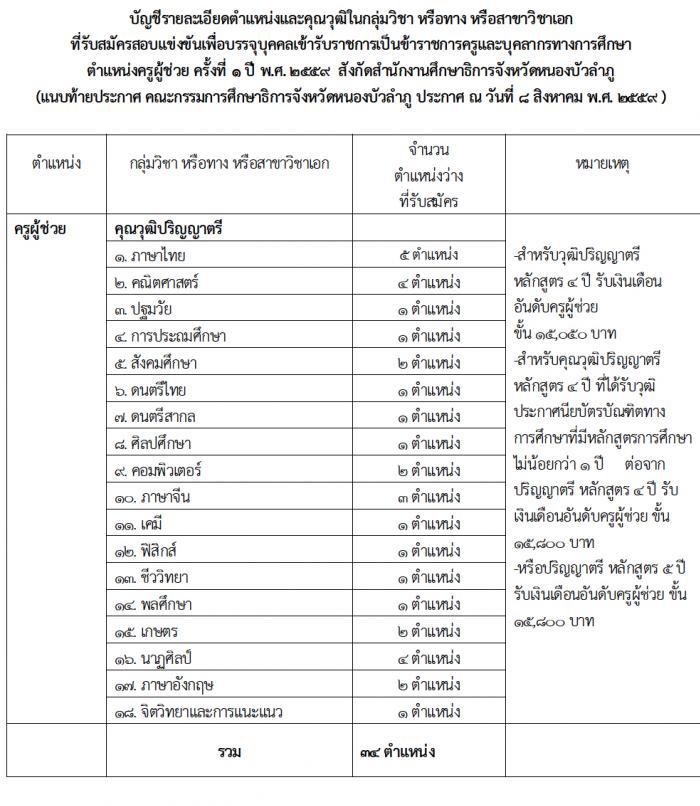 กศจ.หนองบัวลำภู รับสมัครสอบแข่งขันเพื่อบรรจุบุคคลเข้ารับราชการข้าราชการครูและบุคลากรทางการศึกษา ตำแหน่งครูผู้ช่วย ครั้งท่ี 1 ปี พ.ศ.2559