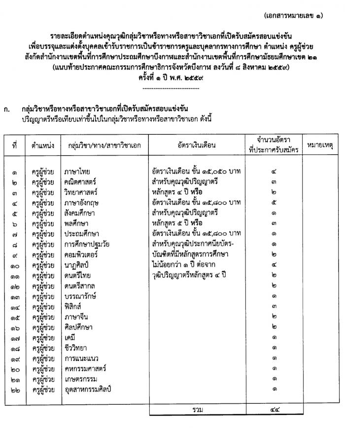 กศจ.บึงกาฬ รับสมัครสอบแข่งขันเพื่อบรรจุบุคคลเข้ารับราชการข้าราชการครูและบุคลากรทางการศึกษา ตำแหน่งครูผู้ช่วย ครั้งท่ี 1 ปี พ.ศ.2559