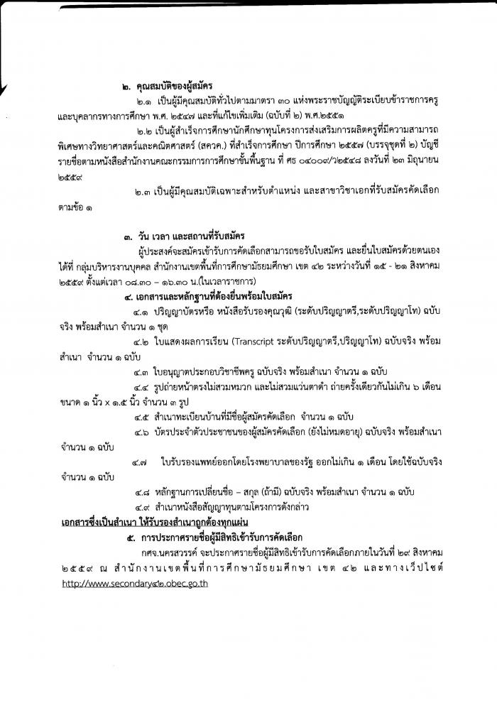 สพม.เขต 42 (นครสวรรค์ อุทัยธานี) รับสมัครคัดเลือกนักศึกษาทุนโครงการส่งเสริมการผลิตครูที่มีความรู้ความสามารถพิเศษทางวิทยาศาสตร์และคณิตศาสตร์ (สควค.) ที่สำเร็จการศึกษา ปีการศึกษา 2557 (บรรจุชุดที่ 2) เพื่อบรรจุและแต่งตั้งเข้ารับราชการเป็นข้าราชการครูและบุคลากรทางการศึกษา ตำแหน่งครูผู้ช่วย รายละเอียดดังเอกสารแนบ