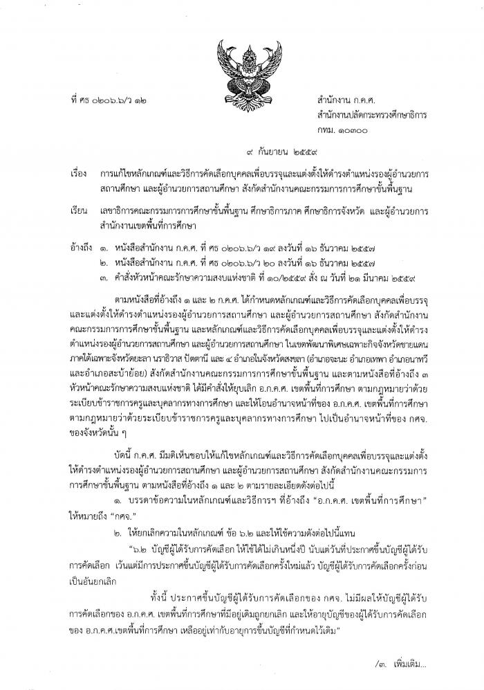 [ว12/2559] การแก้ไขหลักเกณฑ์และวิธีการคัดเลือกบุคคลเพื่อบรรจุและแต่งตั้งให้ดำรงตำแหน่งรองผู้อำนวยการสถานศึกษา และผู้อำนวยการสถานศึกษา สังกัดสำนักงานคณะกรรมการการศึกษาขั้นพื้นฐาน