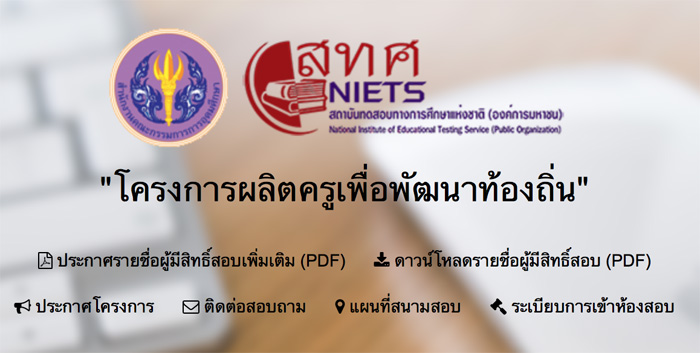 สามารถติดตามประกาศผลสอบครงการผลิตครูเพื่อพัฒนาท้องถิ่น ปี พ.ศ.2559 ได้ที่