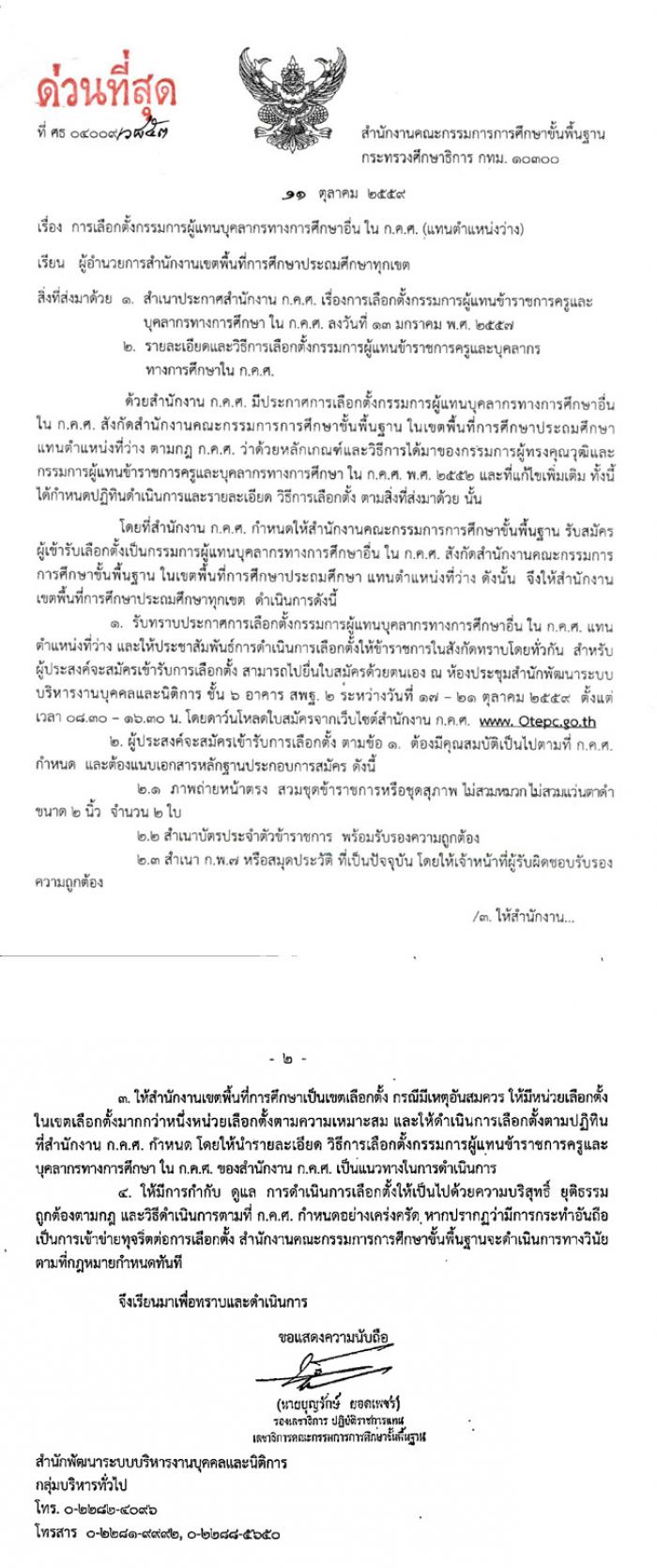 ด่วนที่สุด ที่ ศธ 04009/ว 853 การเลือกตั้งกรรมการผู้แทนบุคลากรทางการศึกษาอื่น ใน ก.ค.ศ. (แทนตำแหน่งว่าง)