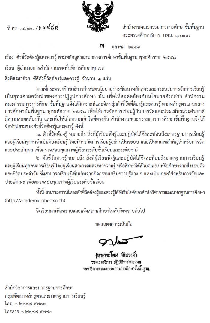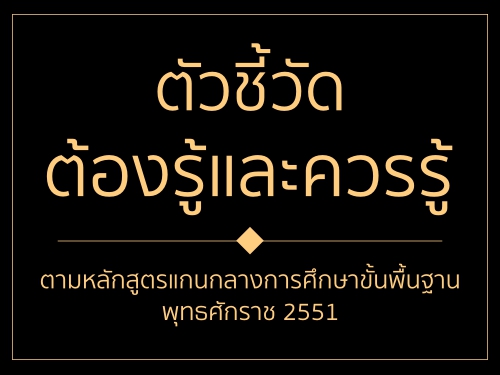 เรื่อง : ตัวชี้วัดต้องรู้และควรรู้ ตามหลักสูตรแกนกลางการศึกษาขั้นพื้นฐาน พุทธศักราช 2551