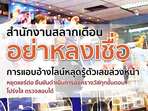 จากกรณีมีข่าวแพร่สะพัดในโลกออนไลน์ ว่ามีไลน์หลุดจากกองสลาก สามารถทราบผลการออกรางวัลก่อนเข้าสู่กระบวนการออกรางวัล ซึ่งการเผยแพร่ดังกล่าว สร้างความเข้าใจผิดและส่งผลเสียหายต่อภาพลักษณ์ของสำนักงานฯ นั้น