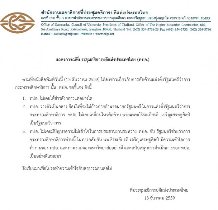 ที่มา ที่ประชุมอธิการบดีแห่งประเทศไทย (ทปอ.) 13 ธ.ค.2559