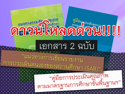 สำนักทดสอบทางการศึกษา สพฐ. เปิดให้ดาวน์โหลดเอกสาร “แนวทางการเขียนรายงานการประเมินตนเองของสถานศึกษา SAR” และ “คู่มือการประเมินคุณภาพตามมาตรฐานการศึกษาขั้นพื้นฐานฯ” เพื่อให้สถานศึกษาได้ใช้เป็นแนวทางสำหรับการเขียนรายงานการประเมินตนเอง (SAR) ดาวน์โหลดได้ที่เว็บของ สำนักทดสอบทางการศึกษา และลิงก์สำรองที่เว็บครูบ้านนอกที่นี่ครับ