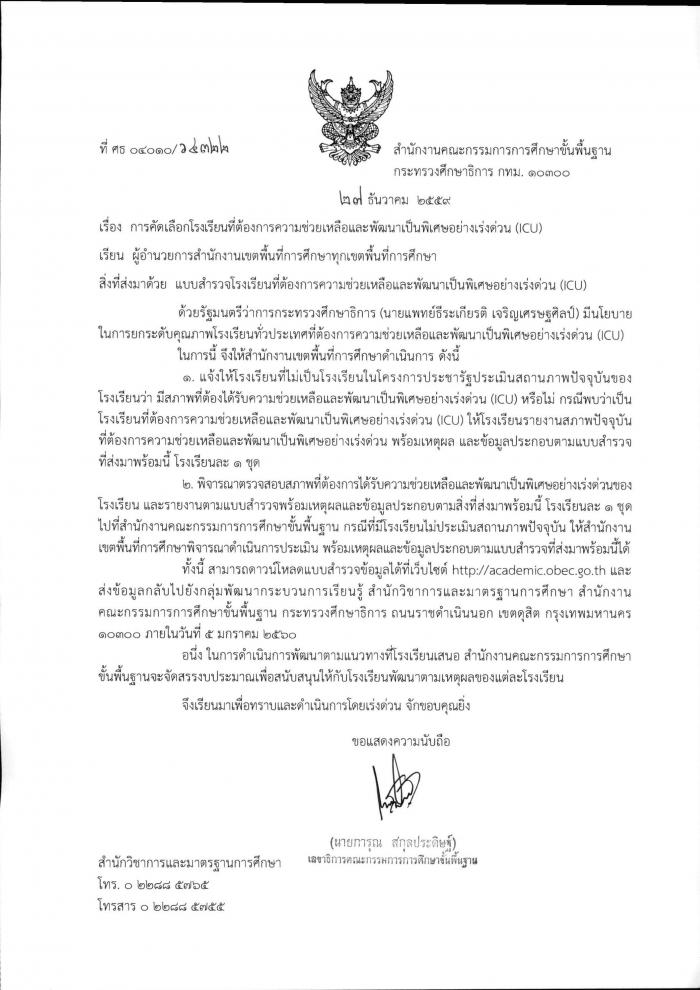 การคัดเลือกโรงเรียนที่ต้องการความช่วยเหลือและพัฒนาเป็นพิเศษอย่างเร่งด่วน (ICU)